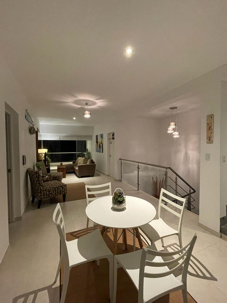 Se vende con muebles y electrodomésticos (refrigeradora de 2 puertas, microonda, horno eléctrico, cocina, campana extractora, parrilla inoxidable, lavadora y secadora).